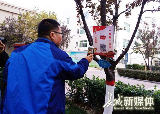 每一棵树上挂着一个二维码,扫一扫便可免费阅读十九大专题书籍,这样的新鲜事发生在廊坊市安次区亿合社区。