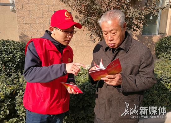 11月4日,廊坊市直、中省直驻廊各机关、企事业单位的万名党员志愿者深入到全市各个街道、社区、广场开展“星期六文明行动”。党员志愿者们一边开展志愿服务,一边将《图解十九大报告》口袋书以及十九大精神学习资料送到千家万户。这种星期六宣讲活动已成为近期该市宣传十九大精神的新常态。