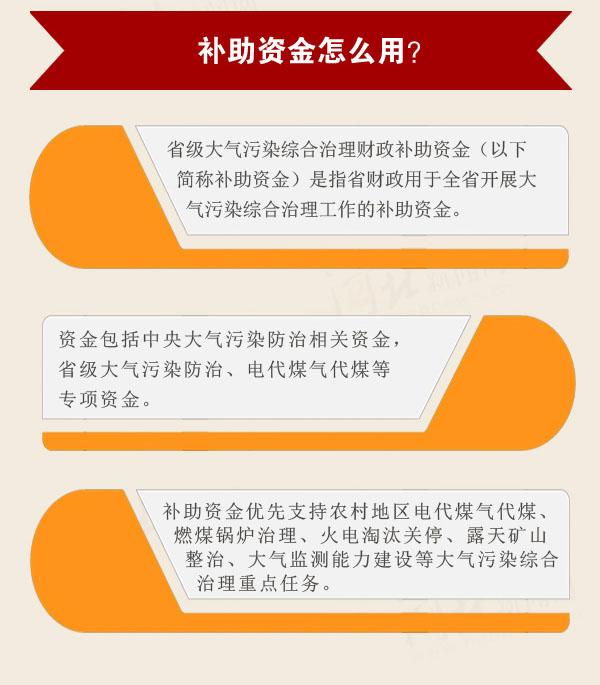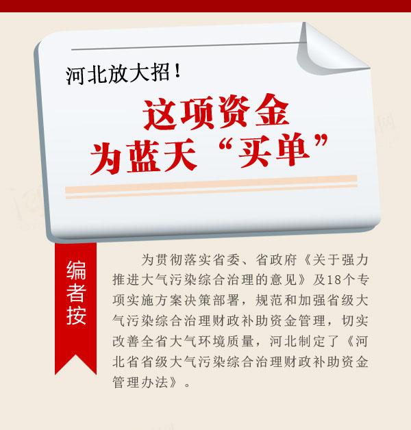为贯彻落实省委、省政府《关于强力推进大气污染综合治理的意见》及18个专项实施方案决策部署,规范和加强省级大气污染综合治理财政补助资金管理,切实改善全省大气环境质量,经省政府同意,河北制定了《河北省省级大气污染综合治理财政补助资金管理办法》。