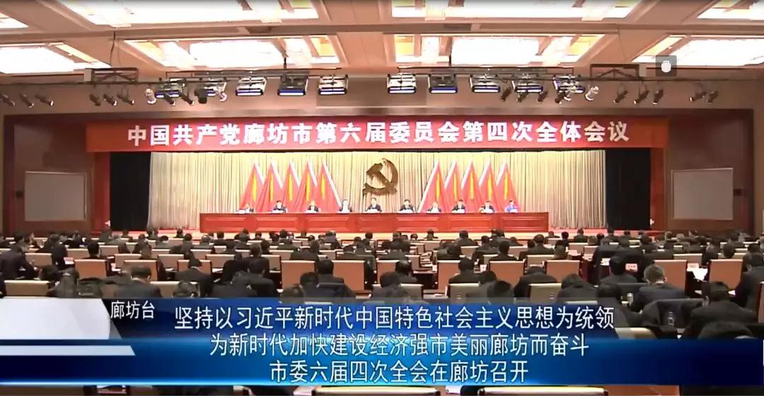 全会由市委常委会主持。市委书记冯韶慧,市委副书记、市长陈平讲话。全会审议了市委常委会工作报告,审议通过了《中共廊坊市委廊坊市人民政府关于全面推动高质量发展的决定》《中共廊坊市委廊坊市人民政府关于建立健全推动工作落实长效机制确保中央和省委省政府重大决策部署落地见效的决定》和《中国共产党廊坊市第六届委员会第四次全体会议决议》。