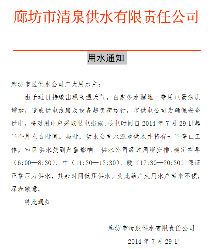 发布时间:2014-07-29 17:56:04 来源: 廊坊市清泉供水有限责任公司