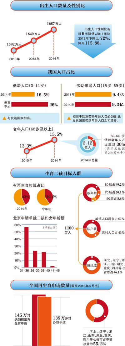 如,我国人口大省河南在去年6月初正式施行“单独二孩”政策。截至今年5月31日,河南省共受理单独二孩生育申请4.7万件,生育1.3万人。在浙江,2014年实际出生1.6万余人,远低于预期的8万人。