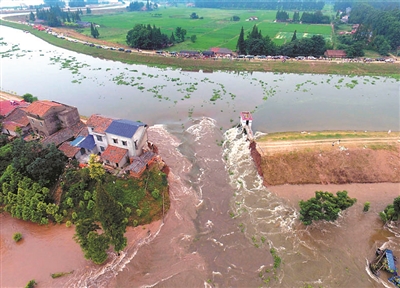 7月10日中午,华容河水顺着溃口涌进了新华垸内,大片良田、房屋成为泽国,超过两万人紧急撤离。