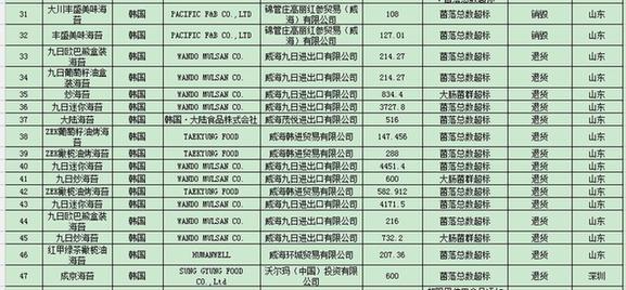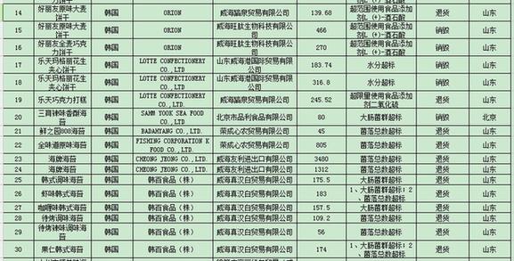 名单还显示,24批未予准入的韩国食品存在菌落总数超标的情况。其中由沃尔玛(中国)投资有限公司进口的1批成京海苔和1批花泉山药藜麦米南瓜玉米粉;由山东神威海韩进贸易有限公司进口的1批ZEK葡萄籽油烤海苔和2批ZEK橄榄油烤海苔。