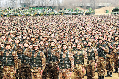 1月3日上午,中央军委隆重举行2018年开训动员大会,习近平向全军发布训令。这是主会场部队官兵宣誓。