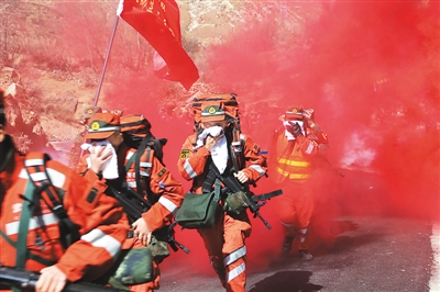 新年伊始,武警西藏总队开展冬季野营拉练。图为1月5日,武警西藏总队拉练队伍正快速通过染毒区域。