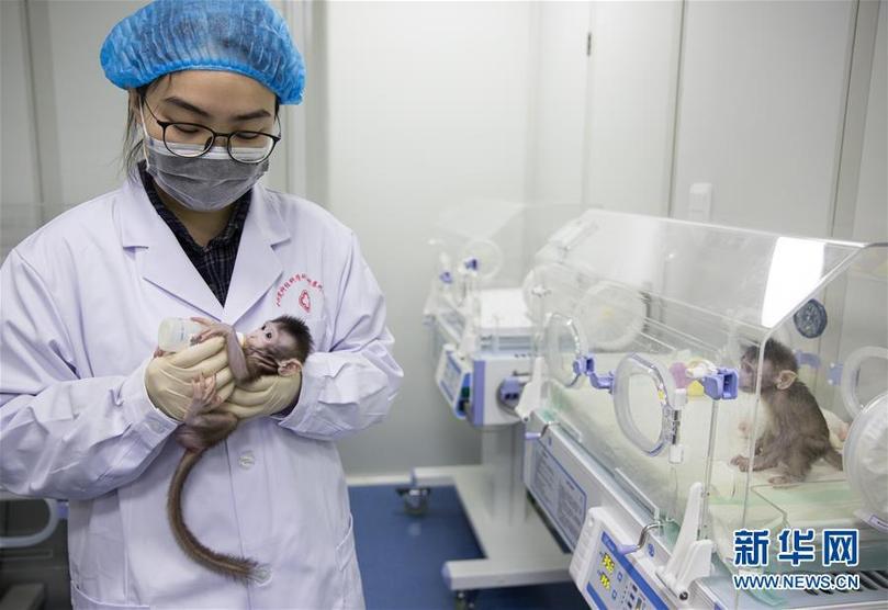 克隆猴“中中”和“华华”在中科院神经科学研究所非人灵长类平台育婴室的恒温箱里得到精心照料
