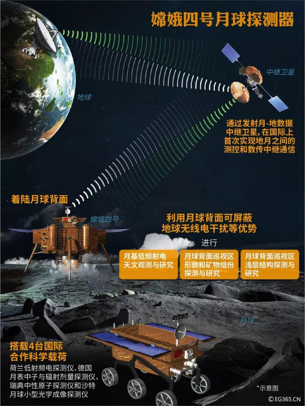 专家表示,中继星将于今年5月发射,要在拉格朗日2点,也就是地月平衡点,设一个中继星。这也是世界上首次在拉格朗(L)2点上设中继星。具备了中继通讯的能力后,将在今年年底进行嫦娥四号的发射。