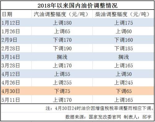 若本次实现上调,2018年的调价格局将变为“七涨三跌一搁浅”。国内油价每十个工作日一调,值得注意的是,4月30日24时追加了一次调整,这是因为增值税税率调整,进而下调了油价。