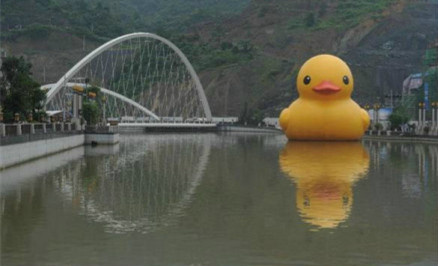 冲走了,如果沿线有朋友看到这个18米高的大黄鸭,请联系贵阳交通广播。