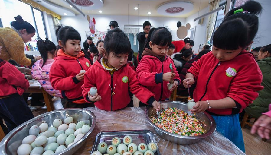 在小雪节气即将到来前,浙江省长兴县李家巷镇中心幼儿园的孩子们在老师的带领下,用大米、糯米、玉米、南瓜、赤豆、咸鸭蛋等农产品亲手制作竹筒饭、八宝糕、糯米团、糖葫芦等,让孩子们在制作传统美食的过程中了解节气文化,在欢乐的气氛中迎接小雪节气的到来。