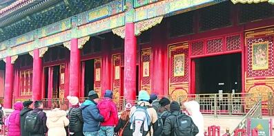 “今天的天气格外冷,但还是特意和家人来故宫体验了一把传统的年味。置身这样精致、全面还原的清代宫廷过年场景,让我们有幸成为第一届在宫里过年的普通人。”一名游客说。位于东雁翅楼的年俗文物展厅通道处聚集了不少游客,走近一看,原来是数字屏幕上的动态门神正在为往来游人贺岁送福,体现出中国传统文化与现代科技的巧妙结合,而贴在紫禁城内大大小小门上的纸质门神,则突显了中国传统年俗文化的丰富多彩。