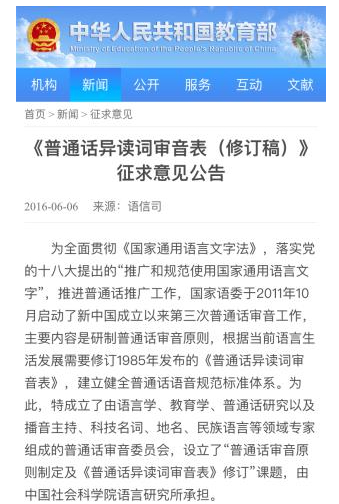 他告诉记者,这则“假新闻”中的大部分内容来自国家语委2016年6月6日发布的《<普通话异读词审音表(修订稿)>征求意见稿》,但是至今尚未正式发布。
