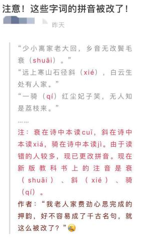 19日,一篇名为《注意!这些字词的拼音被改了》的文章在朋友圈刷屏。