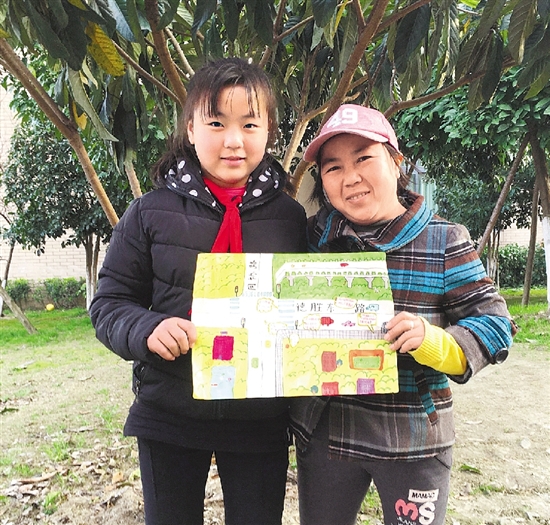 地图是杭州天成教育集团609班的王晓林手绘的,这是这名六年级女生送给环卫工妈妈的“安全工作手册”。