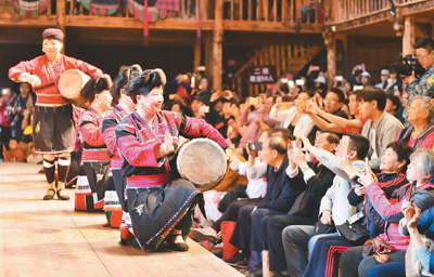 近年来,广西龙胜各族自治县黄洛瑶寨围绕少数民族风情大力发展旅游业,先后推出红瑶歌舞、长发梳妆、红瑶手工制品等特色旅游项目,当地不少瑶族群众依靠发展旅游实现脱贫致富。据介绍,2018年黄洛瑶寨接待游客15万人次,实现旅游收入700余万元。