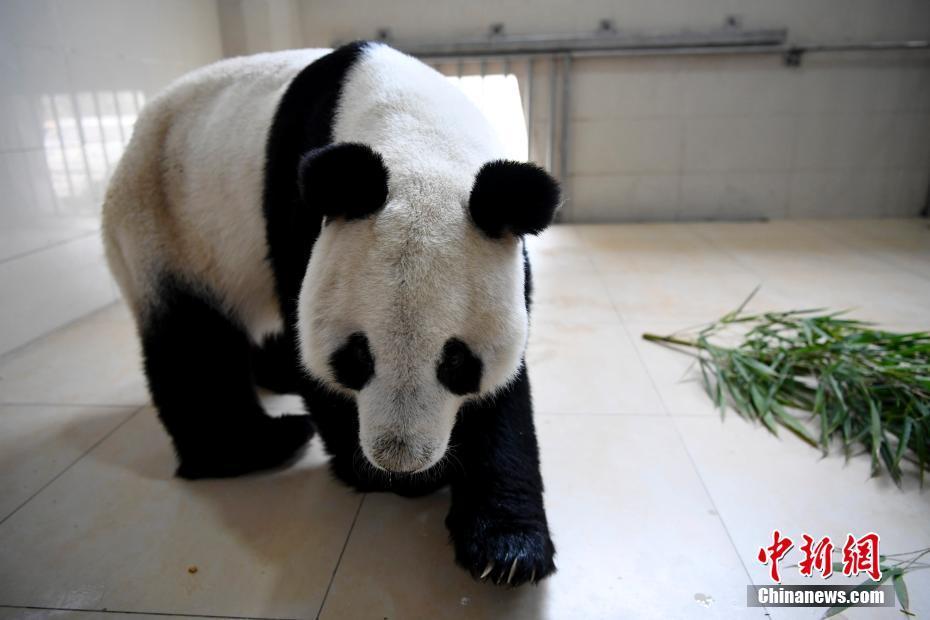 在隔离检疫兽舍等待启程的大熊猫“园园”。