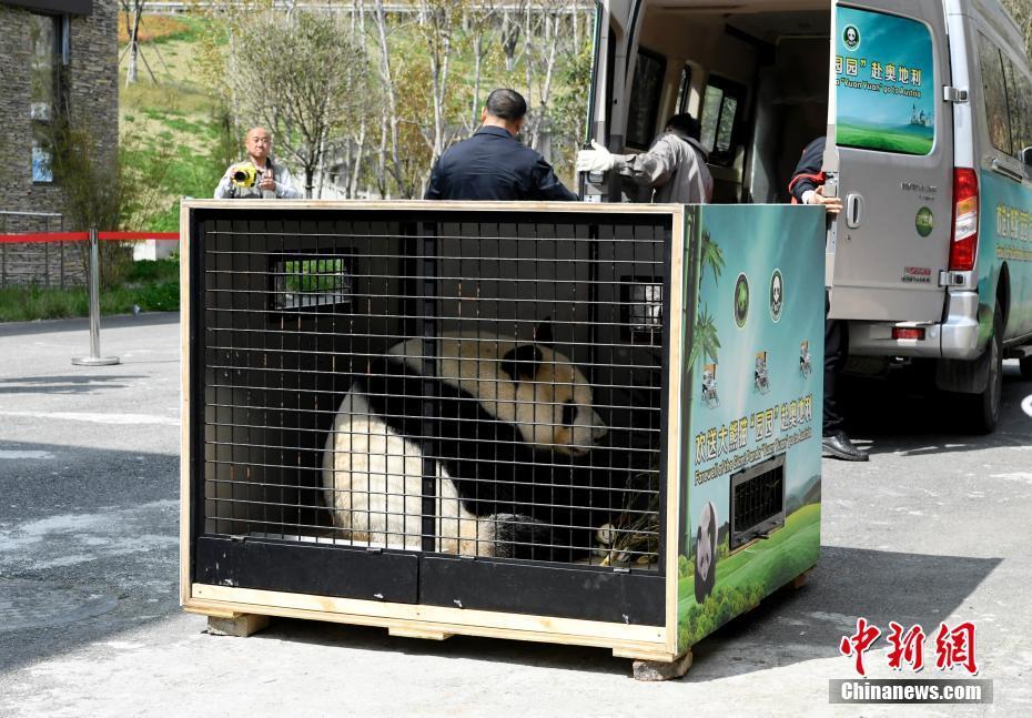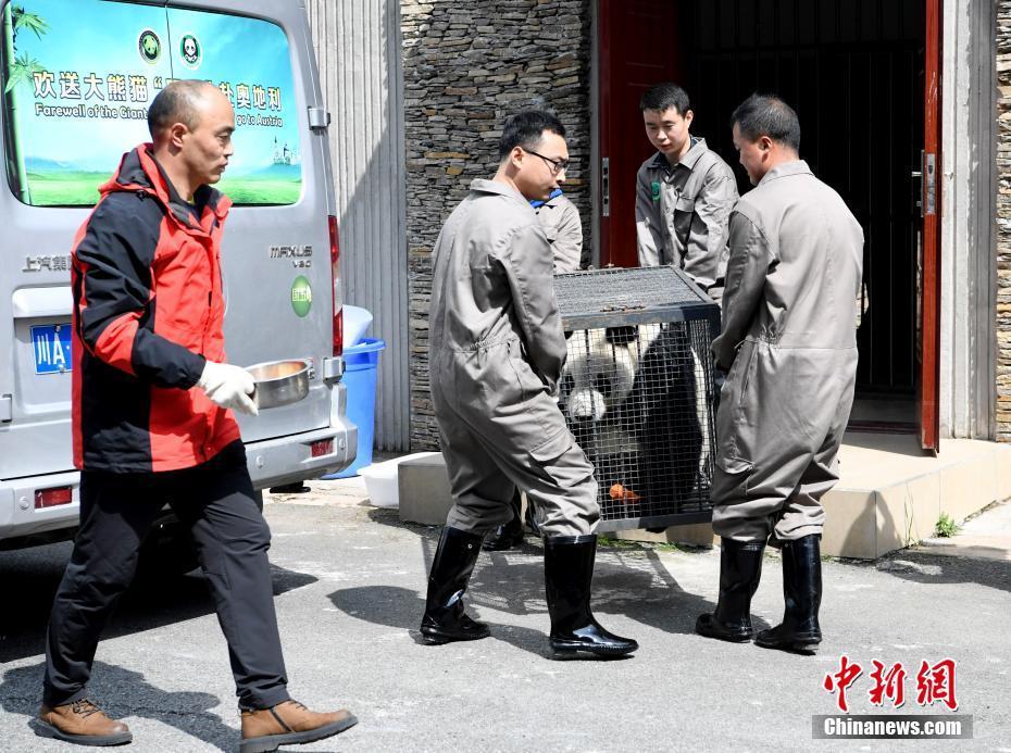 4月15日,中国大熊猫保护研究中心大熊猫“园园”从卧龙神树坪基地出发,启程前往奥地利,开展为期4年的科研合作。大熊猫“园园”将于北京时间16日凌晨4时45分从成都双流机场起飞,预计到达奥地利的时间是当地时间16日下午19时。