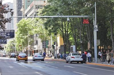 CBD西北区的交通综合治理是一个系统工程。祖纲介绍,除了治理路侧违停,还通过建智能斑马线、整修人行道、设自行车停车位等方式,优化慢行系统;利用智慧交通技术,根据车流量特点智能调控区域内的红绿灯;撤除道路隔离护栏,架空线全部入地等措施改善环境景观。