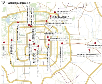 记者注意到,今年有18处名称相似的考点。如一些考点分布在同一所大学的不同附中、一些考点校有不同的校区,考点校的名称只是一字之差,但是位置却完全不同。