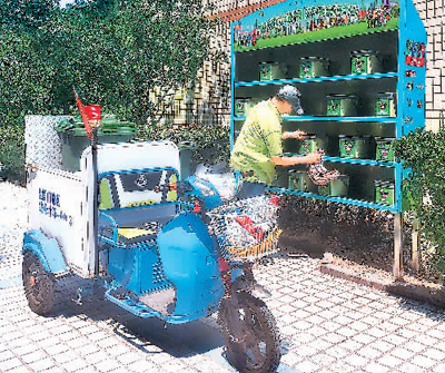 不一会儿,负责收运垃圾的工作人员开着三轮车来了,通过机器扫描桶上安装的智能积分卡,王阿姨投放厨余垃圾的次数被换算为积分,实时上传到垃圾排放登记系统里。积分到一定数量后,王阿姨可领取相应奖励。厨余垃圾则被送到处理站,由专门环卫车辆运走。负责该项目的某环保公司项目经理邢智磊说:“现在雅宝公寓近一半居民会将厨余垃圾放到绿桶里,大家都觉得这个办法好。我们准备积极推广。”