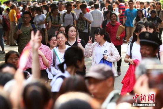 资料图:考生们轻松走出考场。泱波 摄