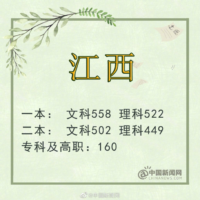 江西:一本理工类535分 文史类560分