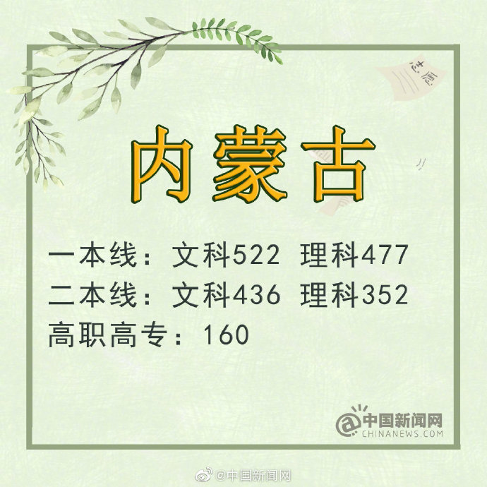内蒙古:文科一本线522分 理科477分