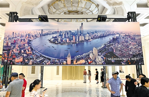 7月2日,在国务院新闻办公室举行的新闻发布会上,四面环绕的大屏幕全方位展示了上海的新面貌。本报记者 祝君壁摄