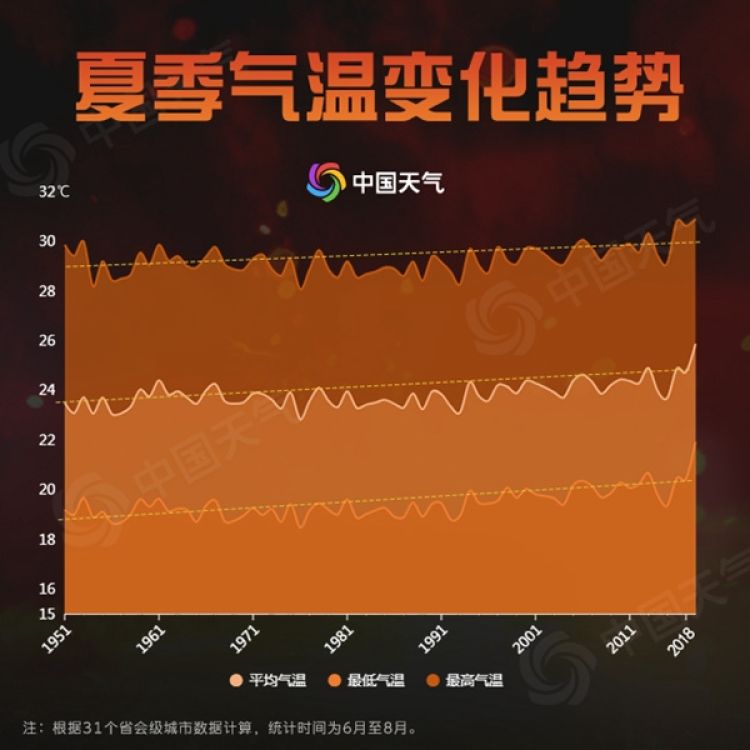 夏天真的越来越热了吗?中国天气网统计了1951年以来全国夏季年平均气温发现,无论平均气温、最高气温还是最低气温均出现上升趋势,越来越热并非错觉。