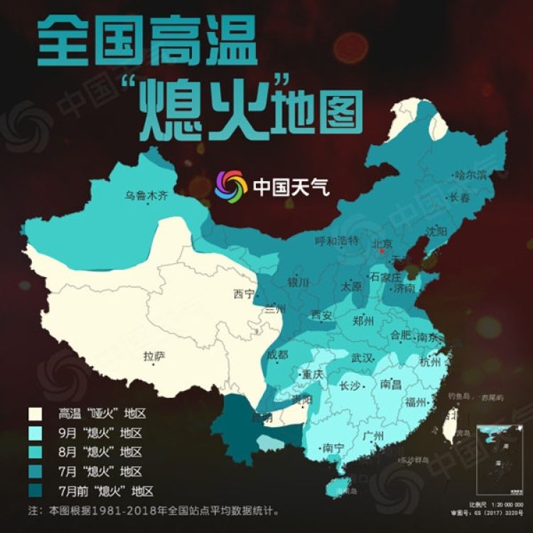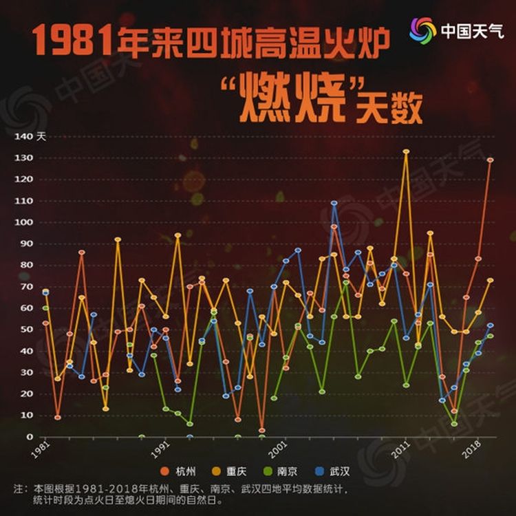 从1981年至2018年的平均数据统计来看,北方火炉“点”得早“熄”得也早,相比之下,江南华南火炉耐力更足,“燃烧”时间更长,往往9月才最后“熄火”。