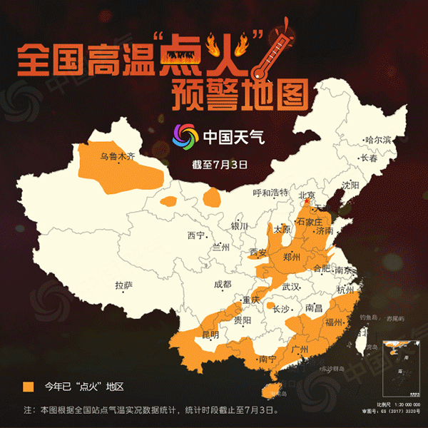 截至7月3日,华南地区、云南、华北南部、黄淮地区及新疆中北部地区的均已“点火”,与常年同期已“点火”地区大体重合。