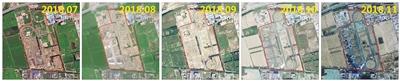 一个典型的建筑施工地块动态变化遥感监测图。北京市环境保护监测中心遥感室供图