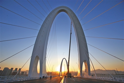 届时,长安街将向西穿过原首钢厂区,跨越永定河水系,延伸至门头沟区三石路,全长达到55公里,成为名副其实的“百里长街”。新首钢大桥建成后,将成为北京西部地标性建筑,为北京西部新增一条进出中心城区的快速通道,方便门头沟、石景山等区域的市民出行。