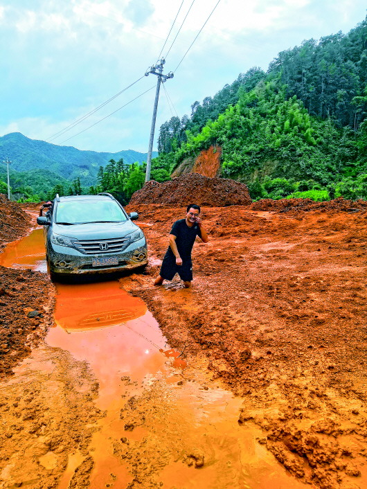 ▲瑶山突发泥石流,付昭成步行前往贫困户家走访。