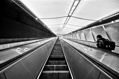出站的84米长道扶梯让人有一种要“飞”到天上去的穿越感