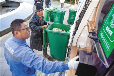 甜水西园社区是商品房住宅区,有居民楼12栋、1020户居民、1600余人,原来设有垃圾桶站34组112个垃圾桶。投放垃圾方便,但夏天蚊蝇多,臭味大。社区书记李颖介绍,去年五六月间,社区党委先后组织5次党员代表议事会。最终研究确定了“集中时间投放、集中地点精拣、集中收集清运”的“三集中”工作法。集中时间投放,即每天早晚固定时间投放;集中地点精拣,即将小区原有的34组桶站缩减为8处投放点;集中收集清运,即安排街道垃圾分类引导员和社区志愿者引导居民分类投放、分类收集,再分别由不同的车辆送至环卫清洁站,投放至与垃圾种类相对应的垃圾箱内。