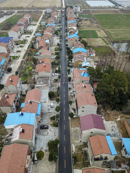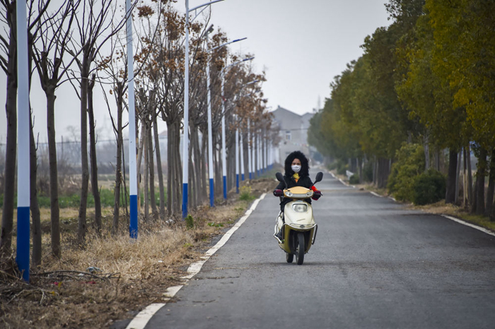 ↑袁湖村的乡间道路上,少有村民出行。新华社记者 胡虎虎摄