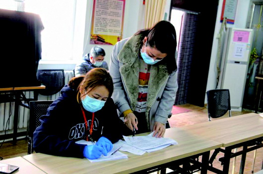 2月8日,卢沟桥街道工委书记高文娟在民岳家园社区回复“12345”群众诉求,与社区工作人员一同记录回复时间及诉求人反馈意见。 采访对象供图