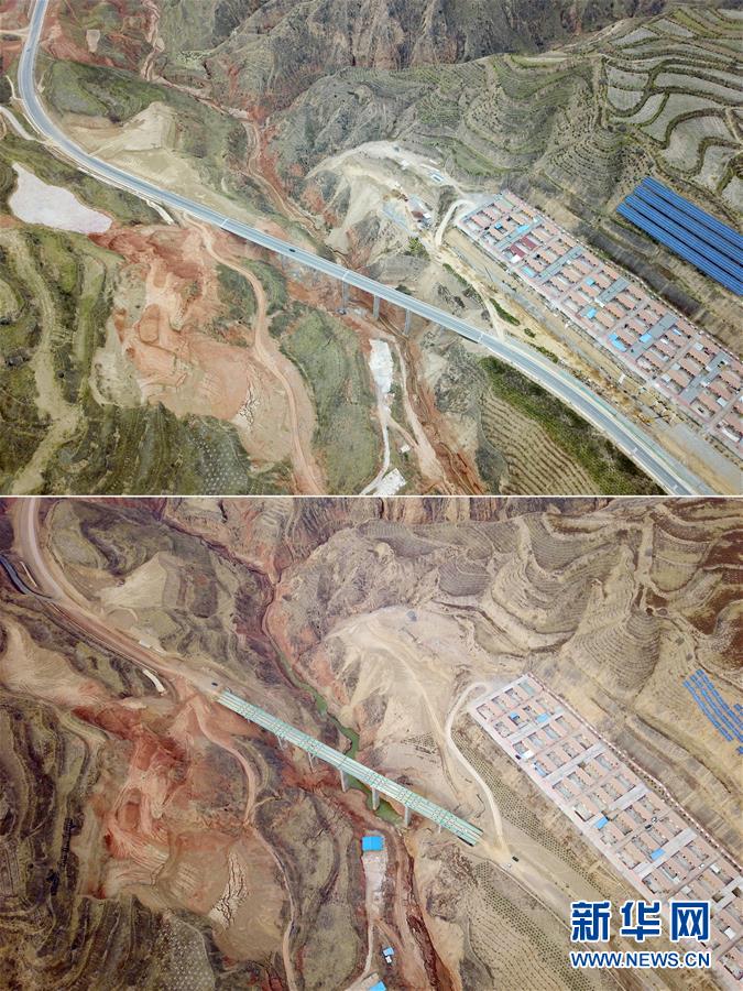 摘要: 上图为4月21日在甘肃东乡族自治县龙泉镇拍摄的已搬迁入住的拱北湾村易地搬迁安置点(无人机照片);下图为2019年3月5日拍摄的建设中的...