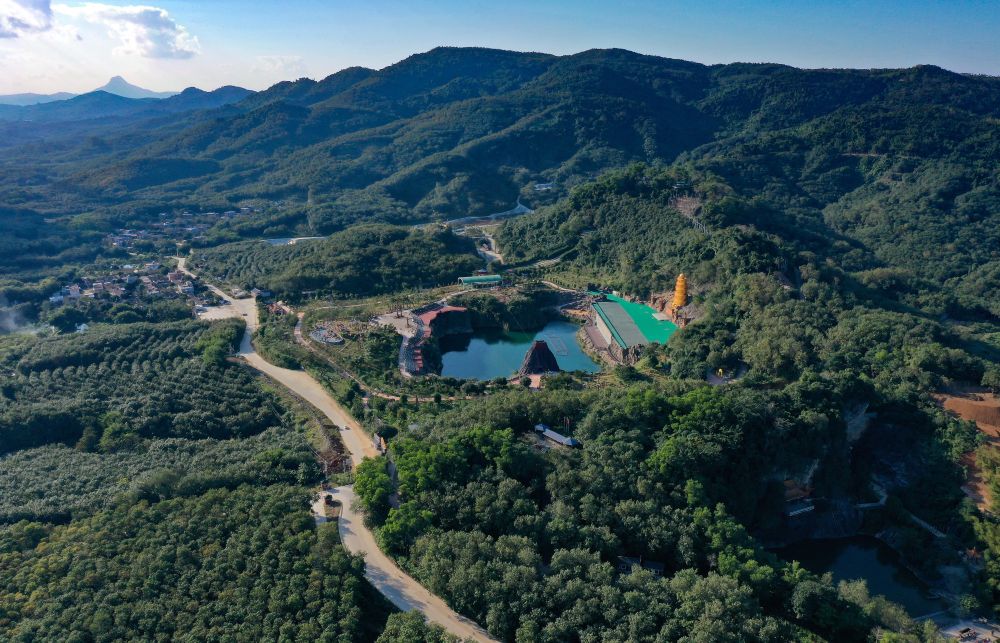 2020年12月29日拍摄的位于海南省儋州市的莲花山景区,这里曾是一座废弃矿山(无人机照片)。新华社记者 郭程 摄