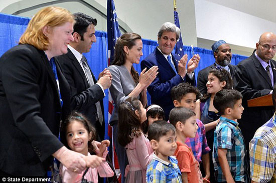 国务院预算削减28%。图为前国务卿约翰·克里(John Kerry)和演员安吉丽娜·朱莉(Angelina Jolie)参加国务院活动。