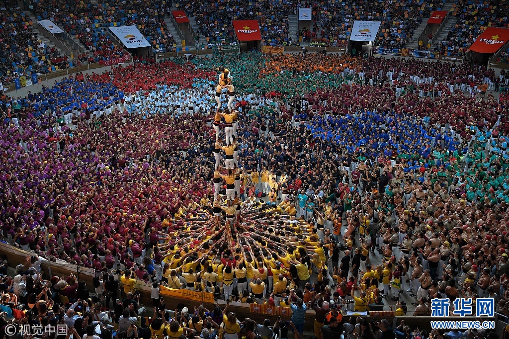 当地时间2018年10月6日,西班牙塔拉戈纳举行搭人塔比赛。搭人塔是加泰罗尼亚地区的传统节日庆祝活动。
