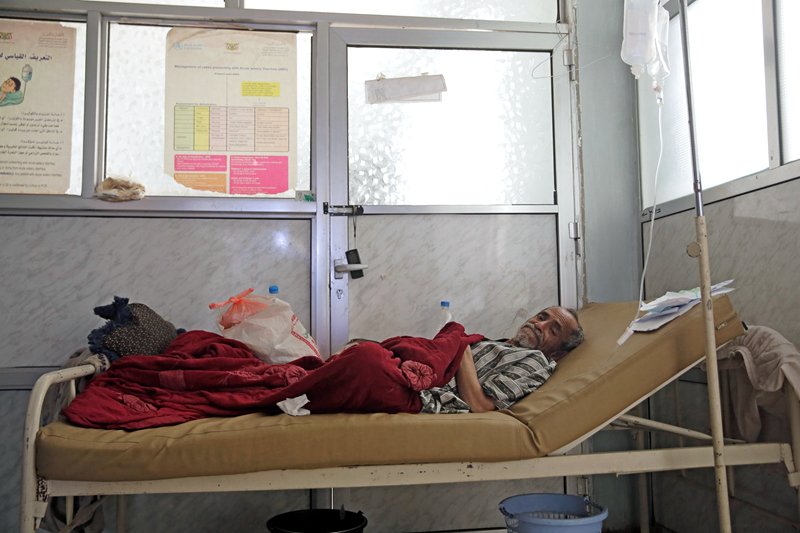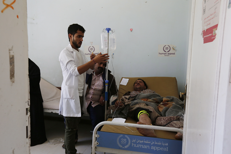 2019年3月28日,也门首都萨那,也门霍乱疫情迅速蔓延,当地霍乱治疗中心内,疑似感染霍乱的民众正在接受治疗。联合国人权高专办表示,经确认核实,自2015年3月到今年3月14日,也门共有7072名平民在冲突中死亡,1万1205人受伤。与此同时,霍乱开始像野火一样在全国蔓延。在过去的三个月里,已出现200例死亡和11万例疑似病例。
