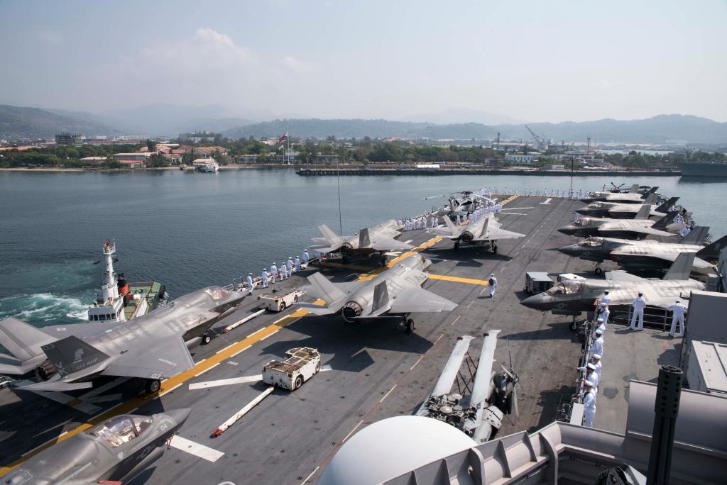 据美国海军社交媒体发布的最新照片显示,美国海军黄蜂号两栖战斗舰抵达菲律宾,参加“肩并肩”联合军事演习。这是美国海军黄蜂号在装备F-35B战斗机后首次抵达菲律宾。
