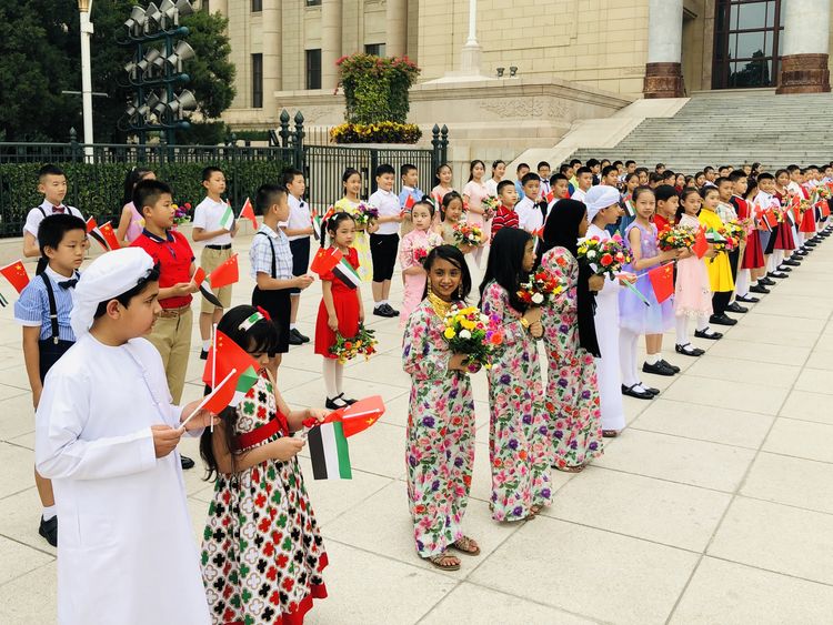 22日北京的欢迎仪式上,也出现了一些阿联酋小朋友的身影——