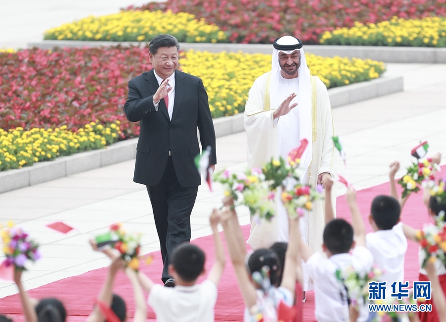 习近平主席举行仪式,欢迎一位远道而来的贵客——阿拉伯联合酋长国阿布扎比王储穆罕默德·本·扎耶德·阿勒纳哈扬。