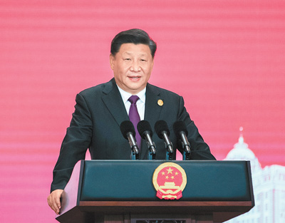 11月4日晚,国家主席习近平和夫人彭丽媛在上海和平饭店举行宴会,欢迎出席第二届中国国际进口博览会的各国贵宾。这是习近平发表致辞。 |