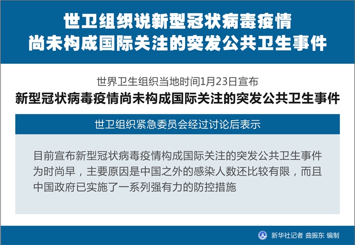 世界卫生组织23日宣布,新型冠状病毒疫情尚未构成国际关注的突发公共卫生事件。