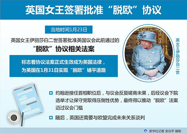 图表:英国女王签署批准“脱欧”协议 新华社记者 安治平 编制